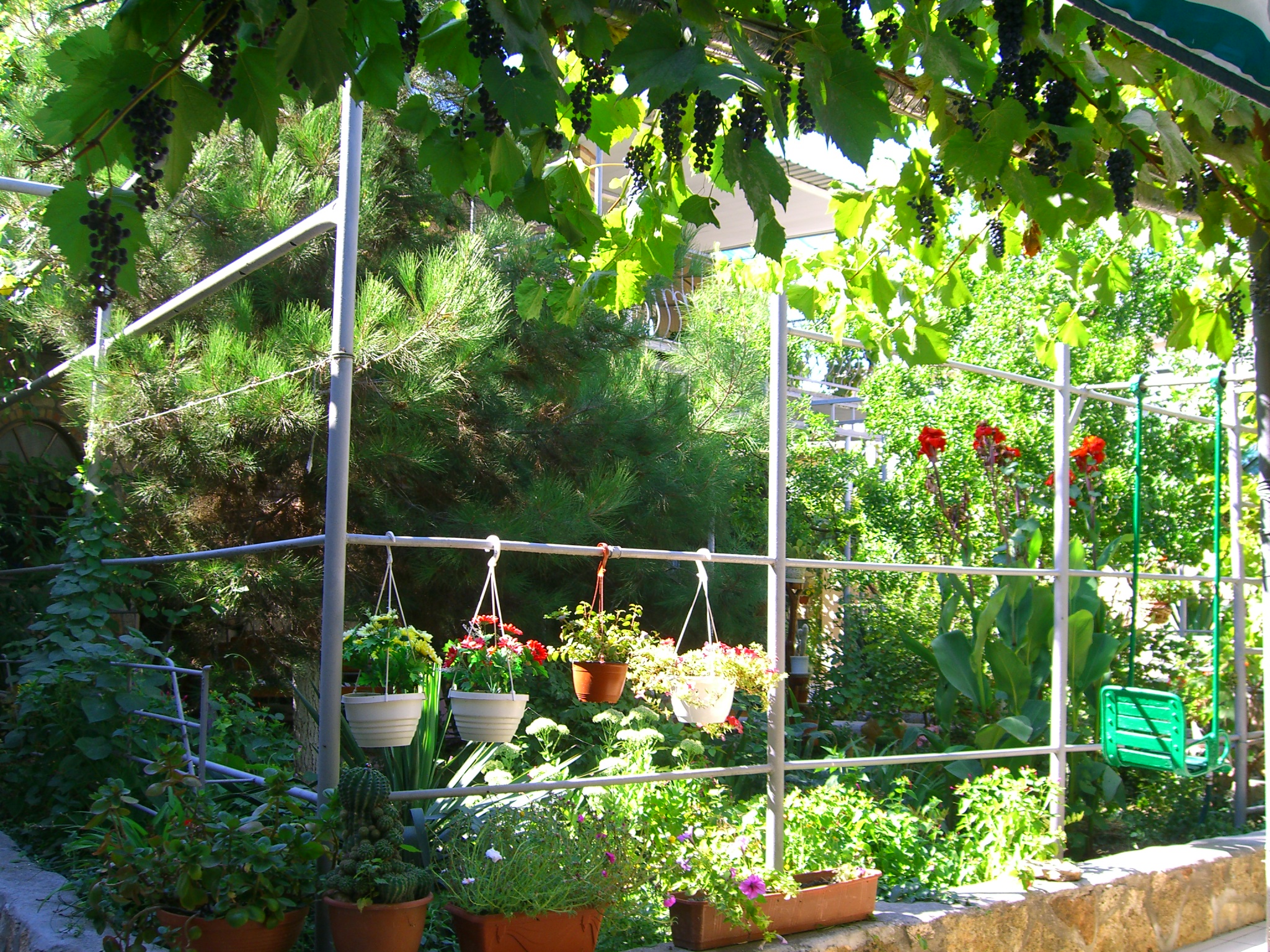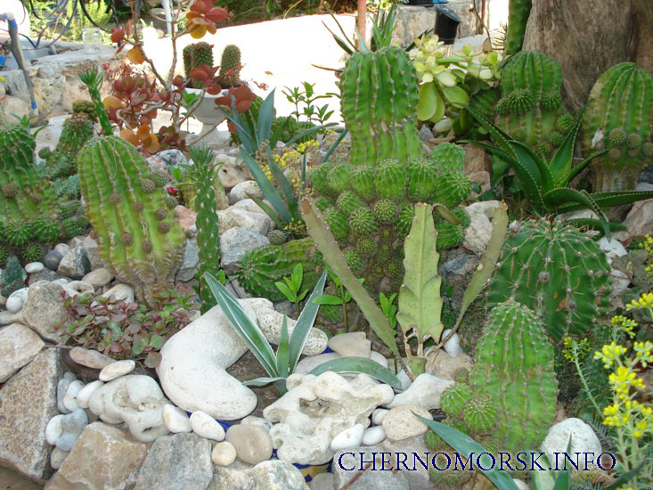 В нашем саду множество цветов, деревьев и скульптур.